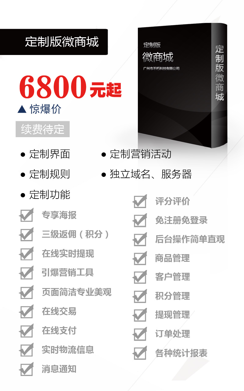 輕松打造線上微商城,讓企業(yè)快速觸網(wǎng),打通線上線下結(jié)合營(yíng)銷(xiāo)。